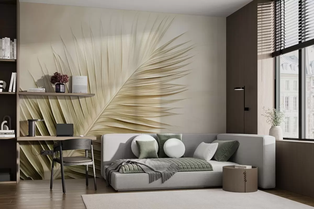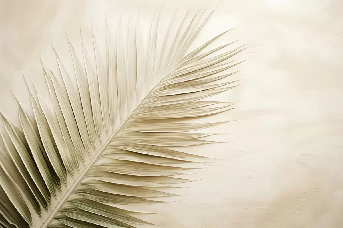 Fototapeten Beigefarbenes Palmblatt auf weichem, strukturiertem Hintergrund N° w04618