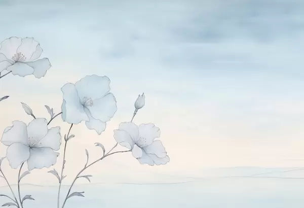 Fototapeten Zarte blaue Blumen vor einem luftigen Himmel N° w04620