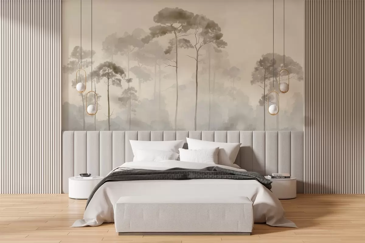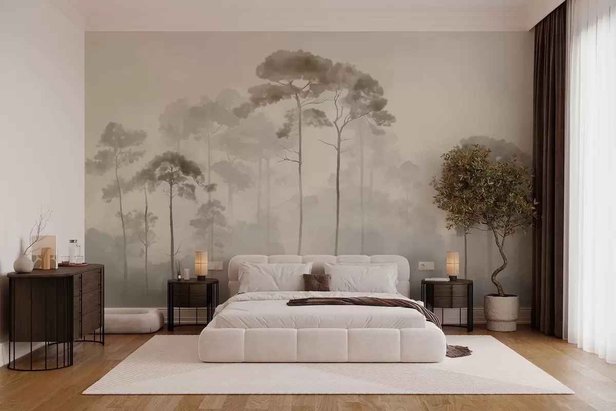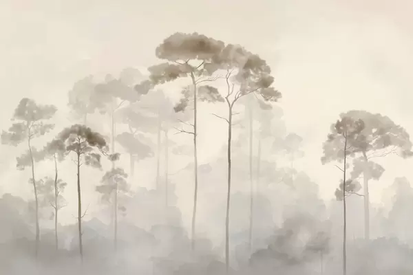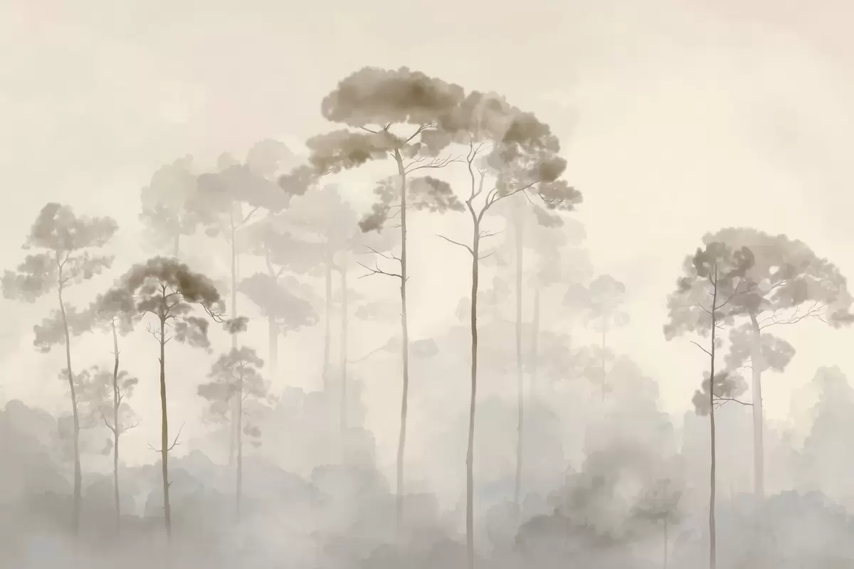 Fototapeten Leichte Silhouetten von Kiefern im Aquarellstil N° w04634