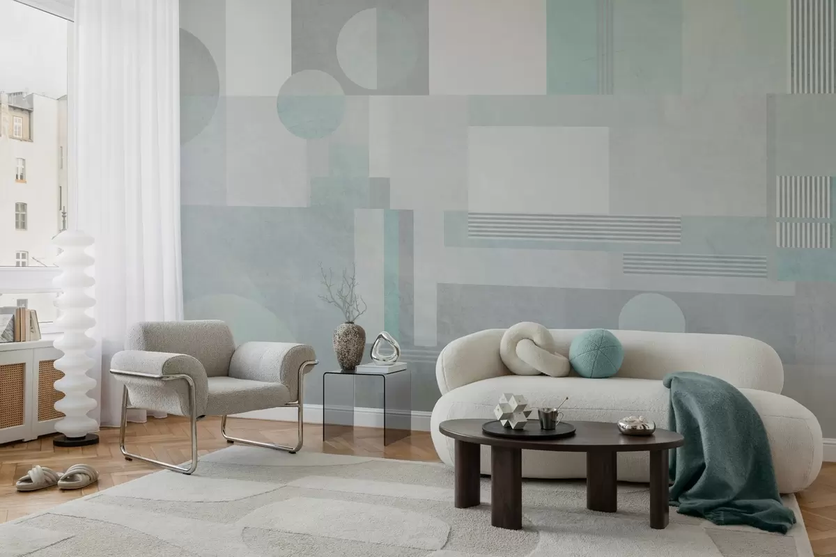 Fototapeten abstrakte Geometrie in Graugrüntönen N° w04635v3