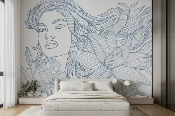 Fototapeten Porträt eines Mädchens in blauen Lilientönen N° w04689v2