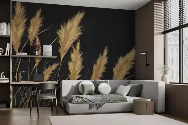 Fototapeten Flauschige Weizenähren auf dunklem Hintergrund N° w04734