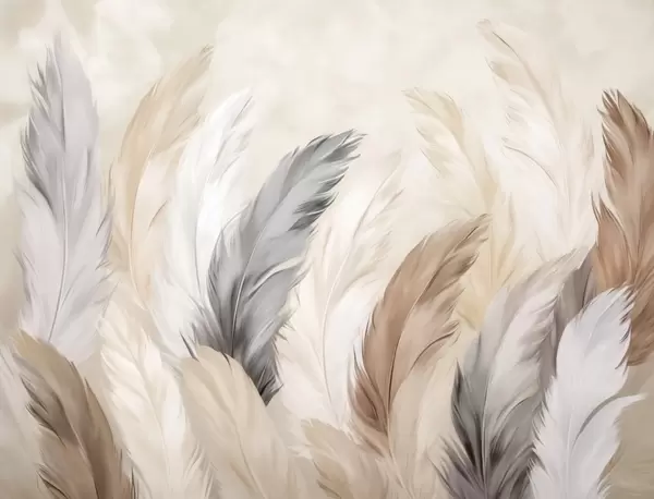 Fototapeten Weiche, flauschige Federn in einer warmen, neutralen Farbpalette N° w04736