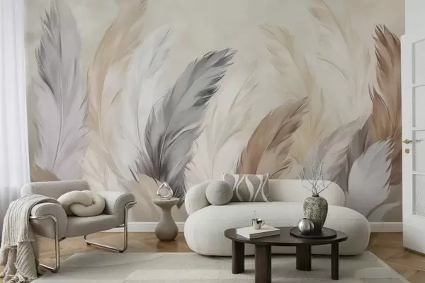 Fototapeten Weiche, flauschige Federn in einer warmen, neutralen Farbpalette N° w04736