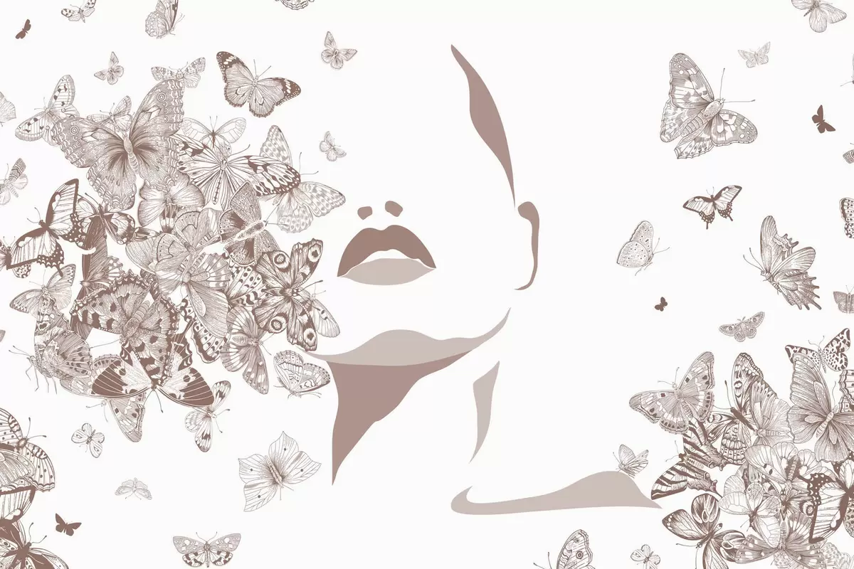 Fototapeten Silhouette eines Gesichts zwischen Schmetterlingen N° w04778