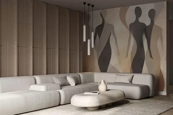 Fototapeten Silhouetten und sanfte Wellen in warmen Beige-Grau-Tönen N° w04787
