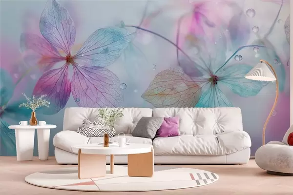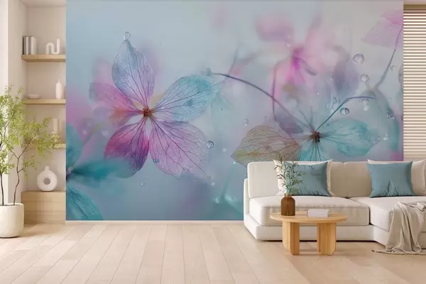 Fototapeten zarte Blumen mit Adern unter Wasser N° w04809