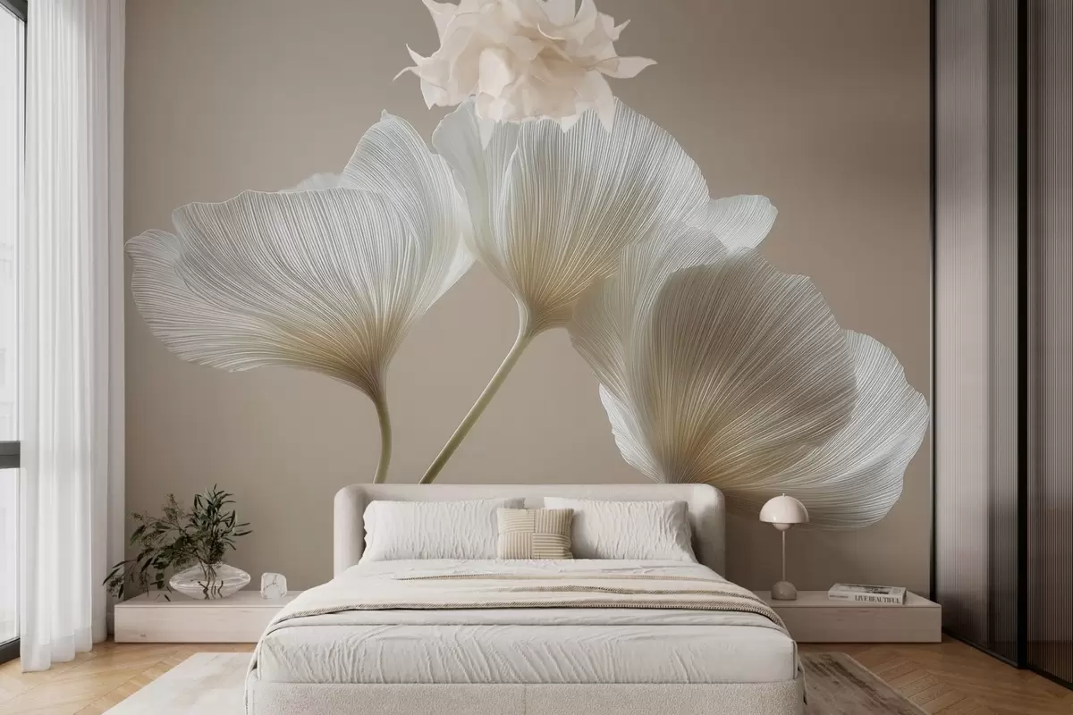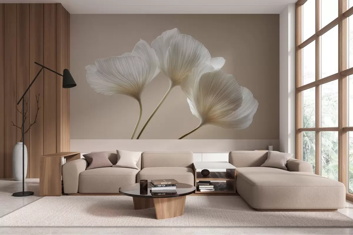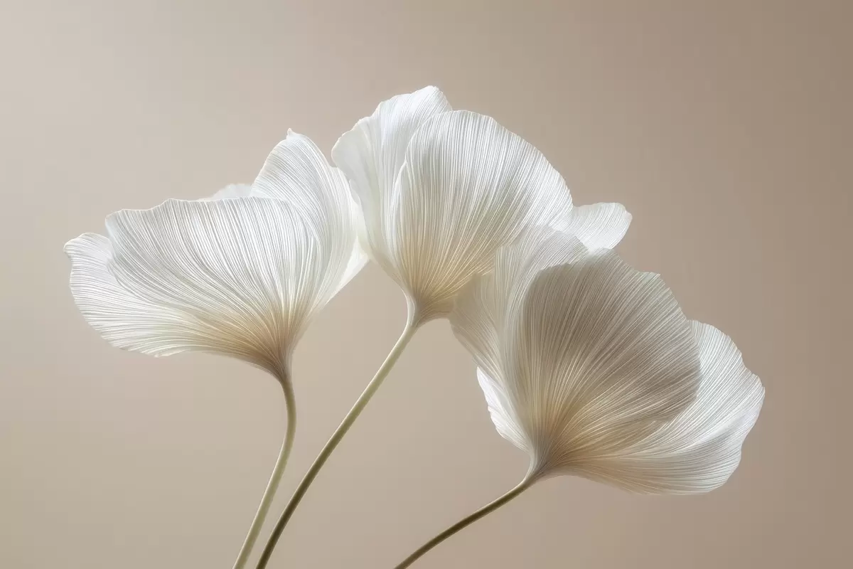 Fototapeten drei zarte Blumen auf beigem Hintergrund N° w04810