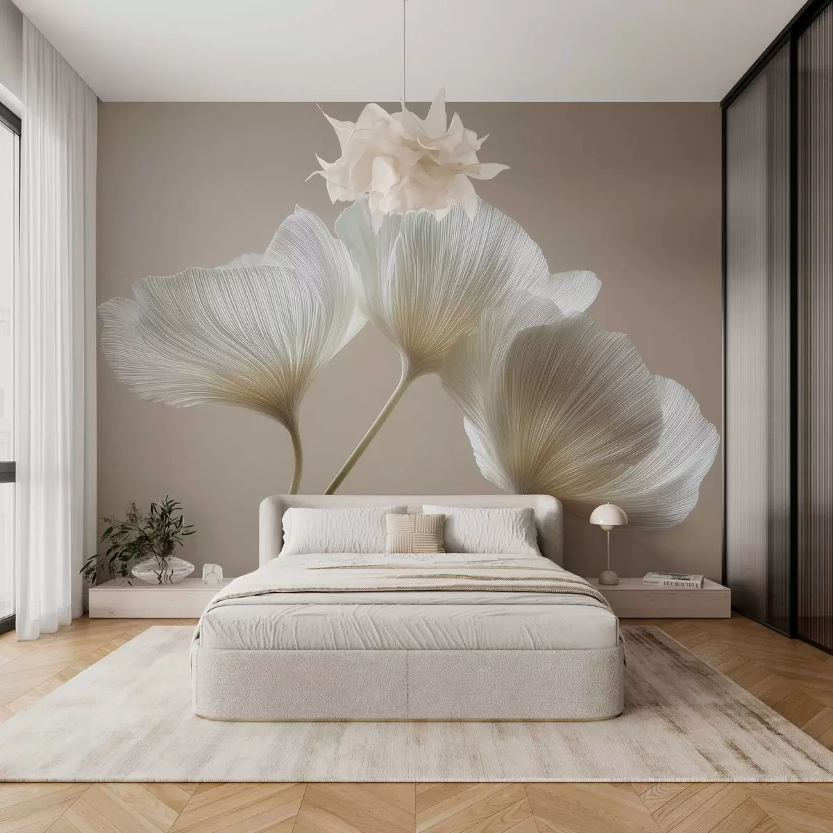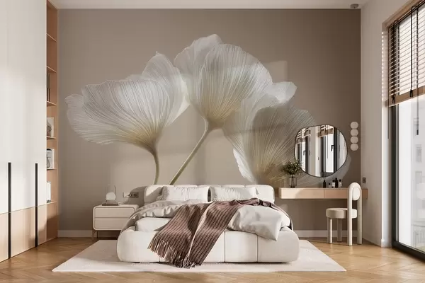 Fototapeten drei zarte Blumen auf beigem Hintergrund N° w04810