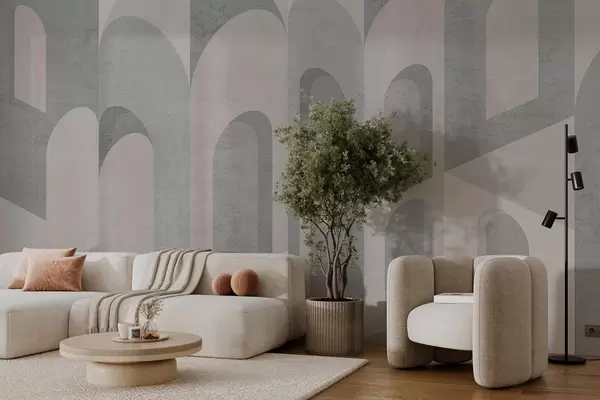 Fototapeten städtische Metamorphosen des Bogens in pudrigen Grautönen N° w04812