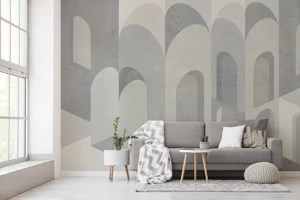 Fototapeten städtische Metamorphosen des Bogens in grauen und kühlen Beigetönen N° w04812v1