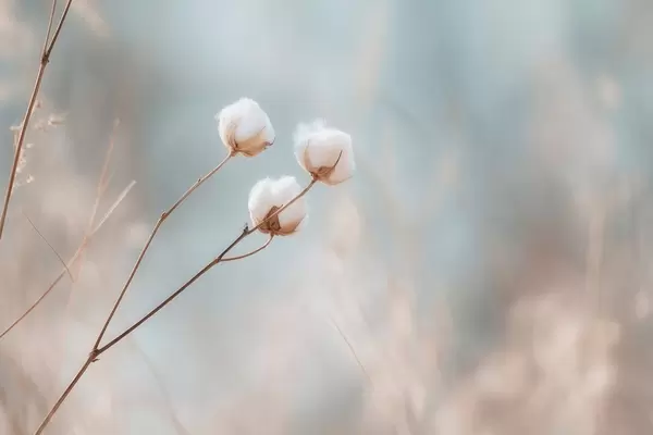 Fototapeten drei Baumwollblüten auf einem verschwommenen Hintergrund N° w04820