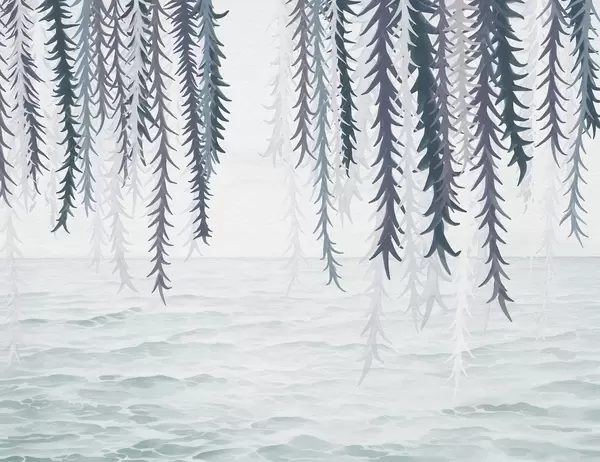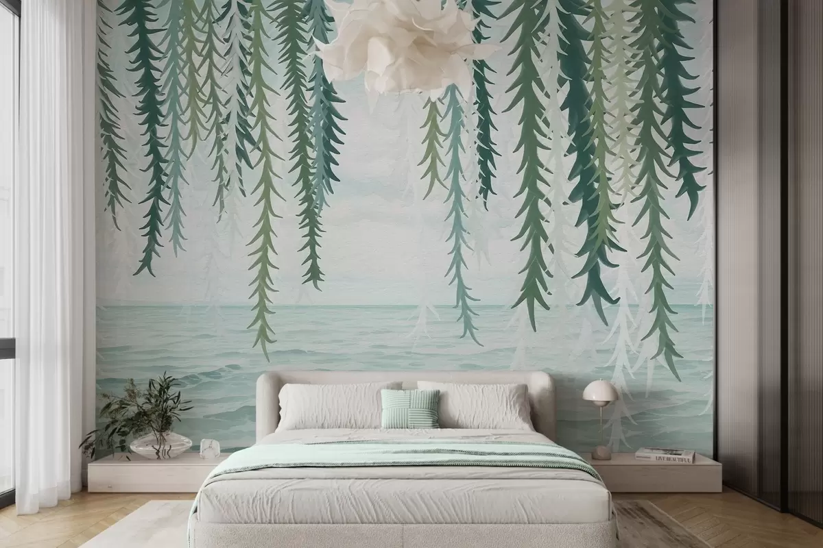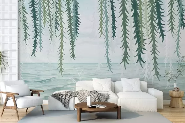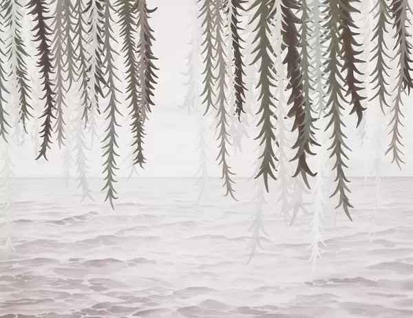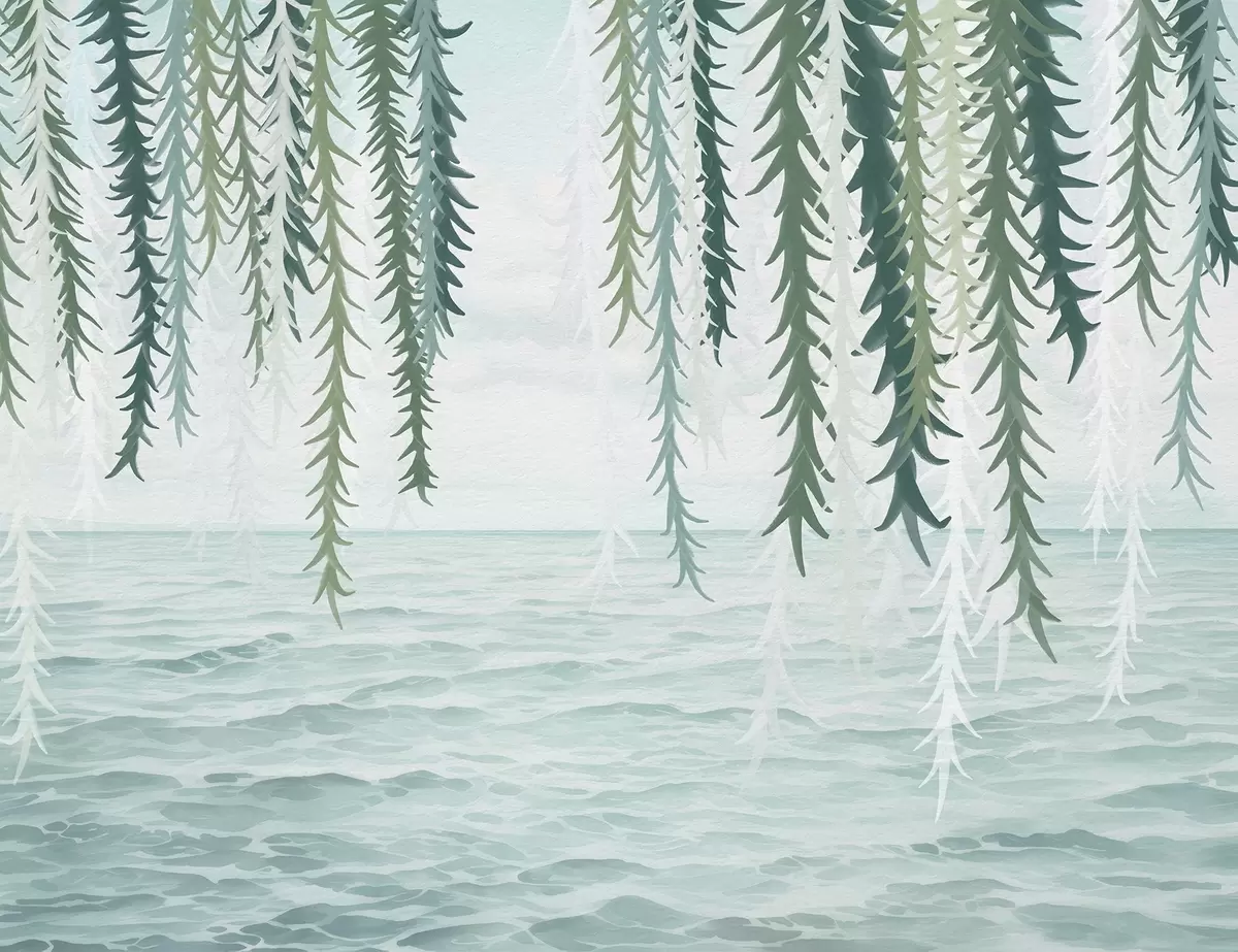 Fototapeten Zarte Reben, die über Wasser hängen, im Aquarellstil N° w04830