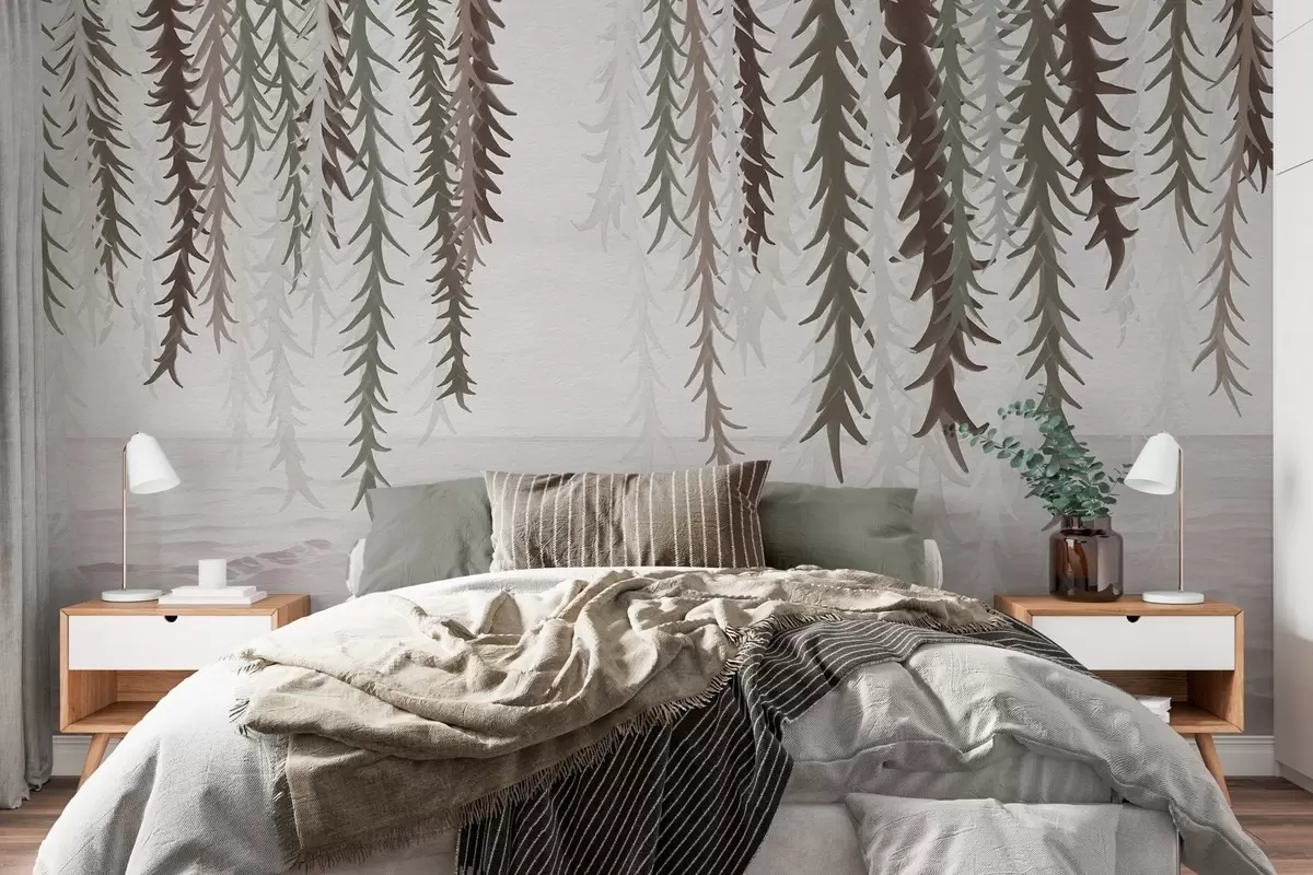 Fototapeten Zarte Reben, die über Wasser hängen, im Aquarellstil N° w04830v2