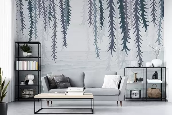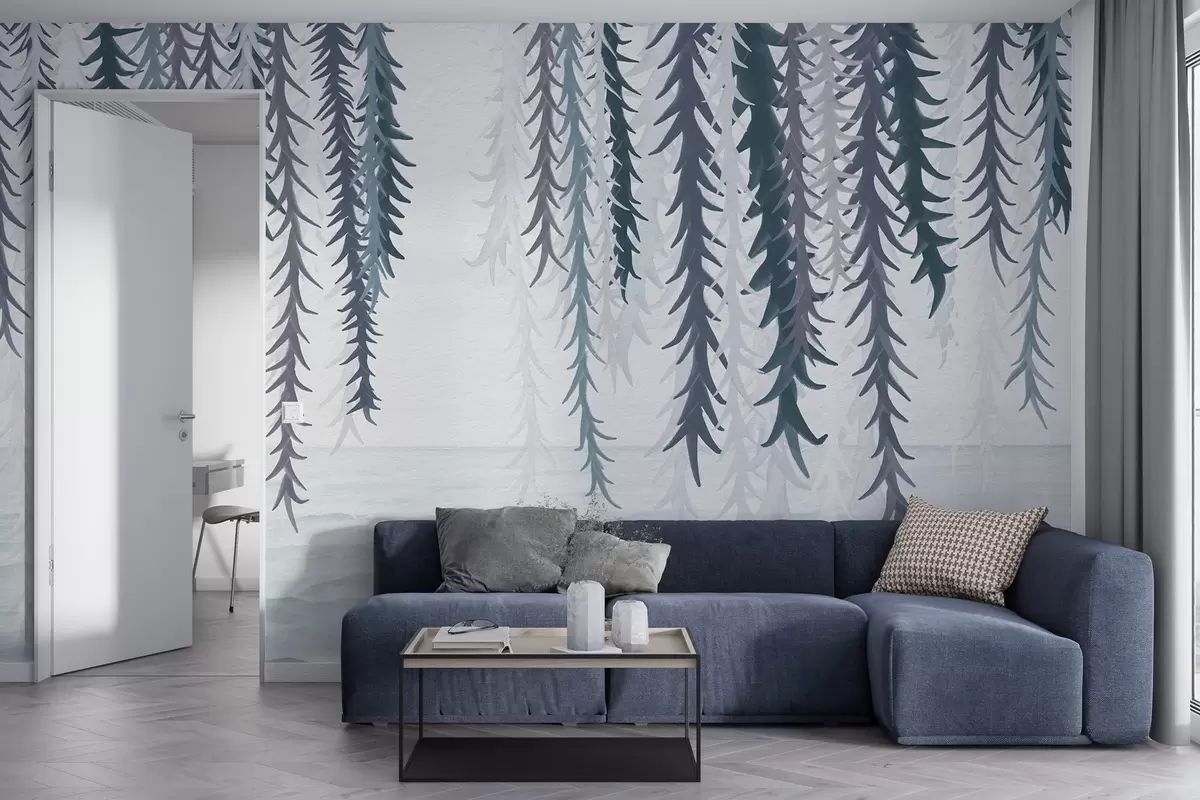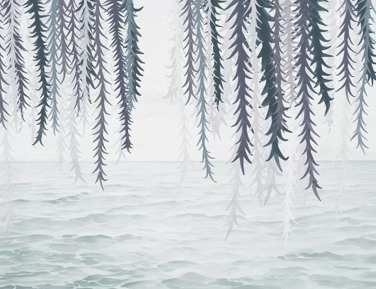 Fototapeten Zarte Reben, die über Wasser hängen, im Aquarellstil N° w04830v3
