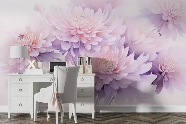 Fototapete Üppige Chrysanthemen in Aquarellfarben auf hellem Hintergrund w04832