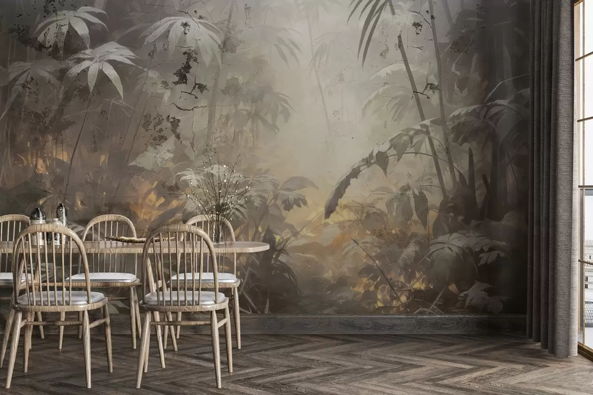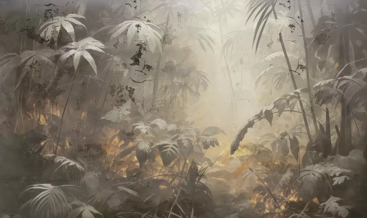 Fototapeten Bemalter Dschungel hinter einer schmuddeligen Betonwand N° w04833