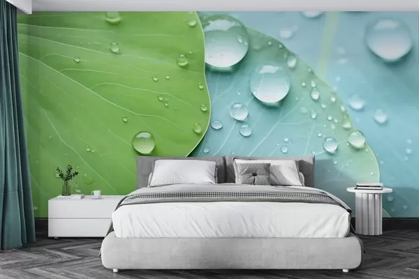 Fototapeten Wassertropfen auf Blättern Makro-Aquarell N° w04838