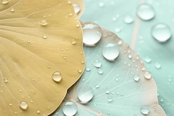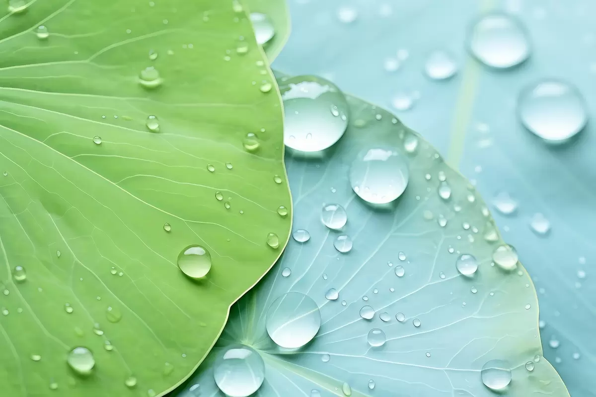 Fototapeten Wassertropfen auf Blättern Makro-Aquarell N° w04838