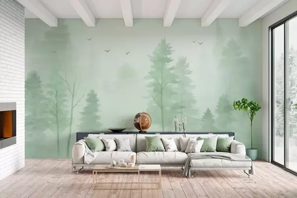 Fototapeten Aquarellartiger Wald aus der Vogelperspektive in Grüntönen N° w04872v1