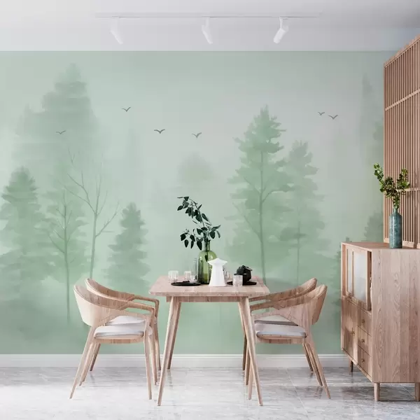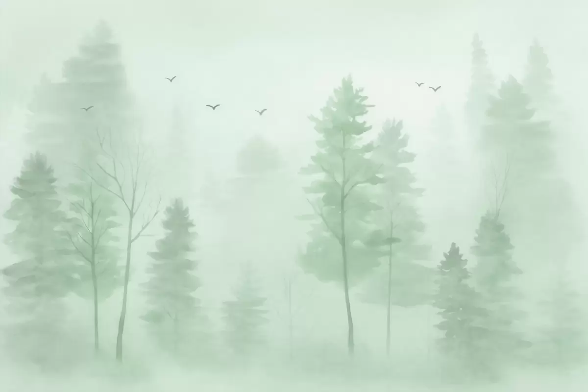 Fototapeten Aquarellartiger Wald aus der Vogelperspektive in Grüntönen N° w04872v1