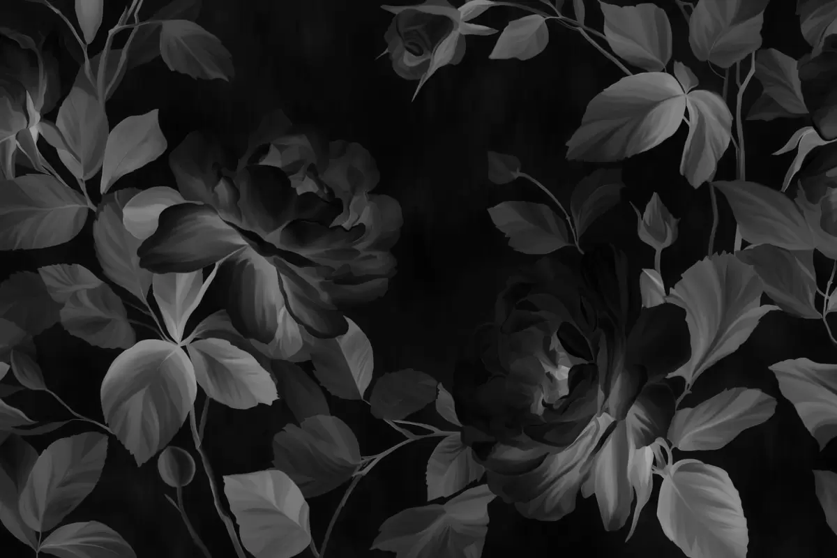 Fototapeten Schwarz-weiße malerische Rosen im Stil eines Ölgemäldes N° w04873v1
