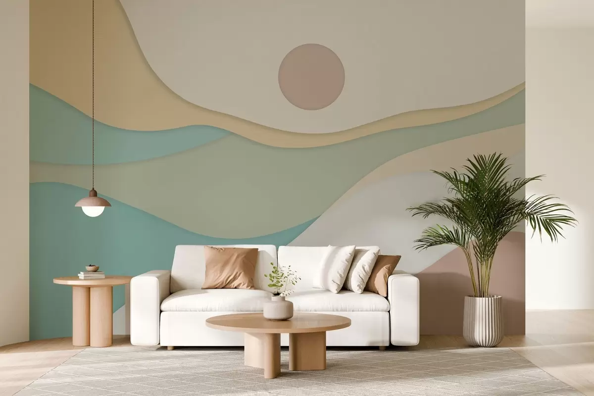 Fototapeten Minimalistische Abstraktion mit weichen, wellenförmigen Formen, die an fließende Landschaften und Dünen erinnern. N° w04874