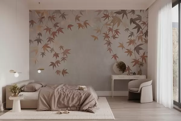 Fototapeten Bunte Efeublätter, die im Stil eines Ölgemäldes von oben herabfallen. N° w04878