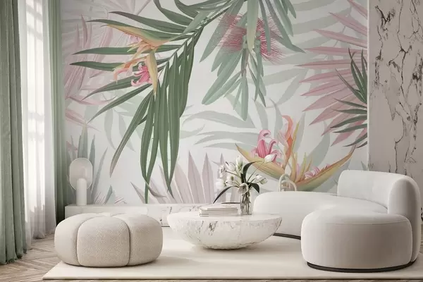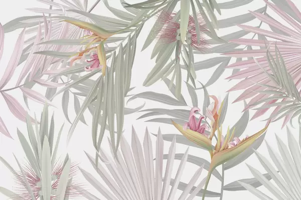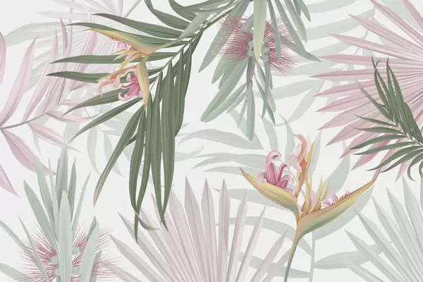 Fototapeten Strelitzia in Palmblättern N° w04896v2