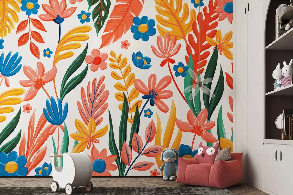 Fototapeten Helles Muster mit Blumen und Blättern N° w05003