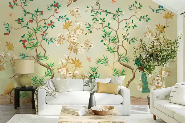 Sie können die Tapete sehr vorsichtig mit einem leicht feuchten Schwamm reinigen. Wir raten jedoch davon ab, die Tapete zu schrubben oder Reinigungsmittel zu verwenden, da dies die Oberfläche und die Farben der Tapete beschädigen kann.