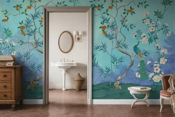 Sie können die Tapete sehr vorsichtig mit einem leicht feuchten Schwamm reinigen. Wir raten jedoch davon ab, die Tapete zu schrubben oder Reinigungsmittel zu verwenden, da dies die Oberfläche und die Farben der Tapete beschädigen kann.