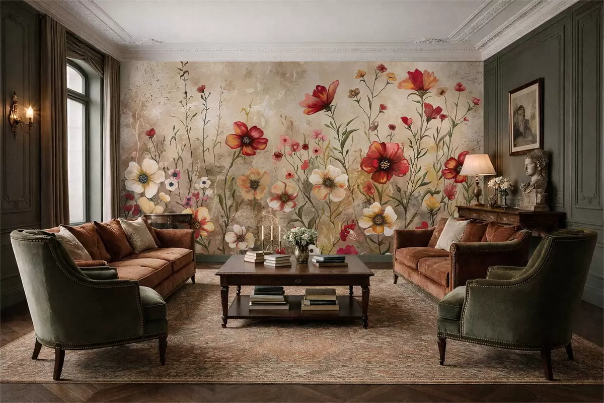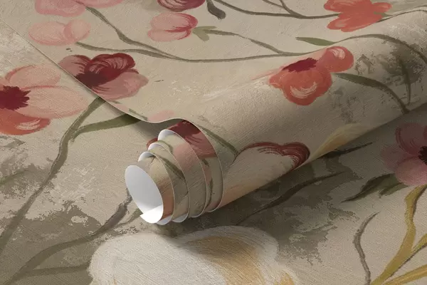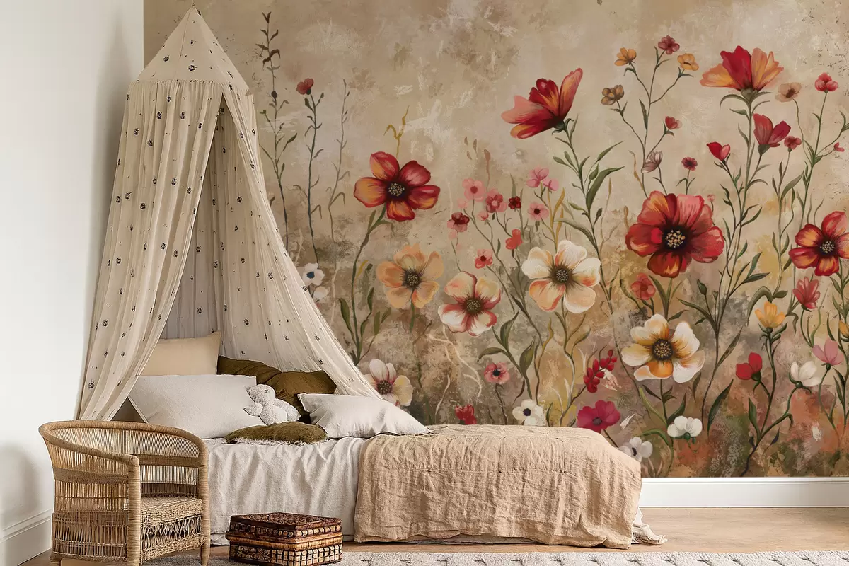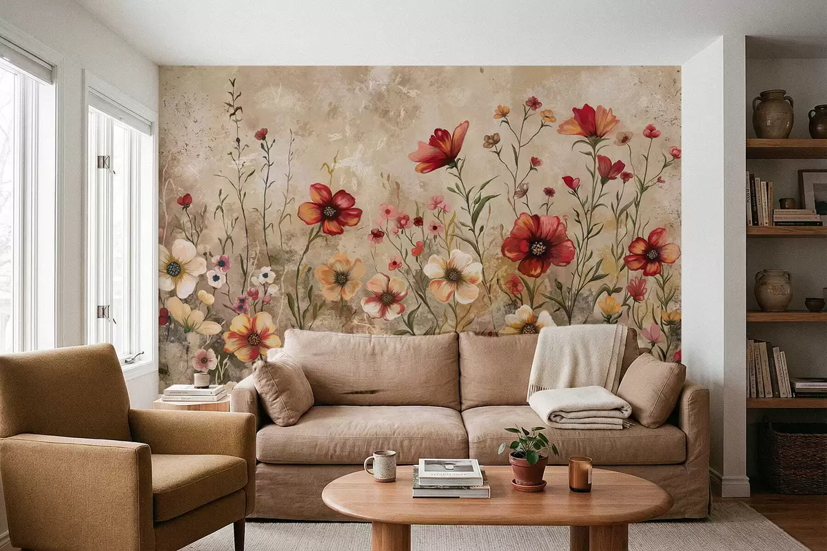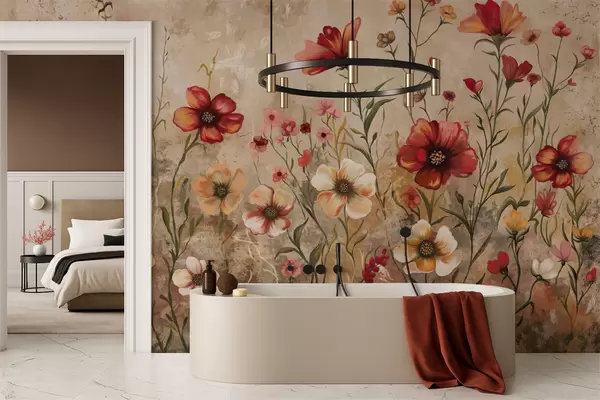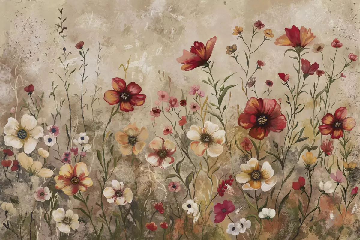 Fototapeten Blumenarrangement mit strukturiertem Hintergrund in warmen Farbtönen N° w05016