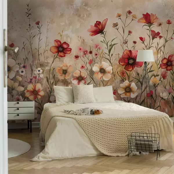 Fototapeten Blumenarrangement mit strukturiertem Hintergrund in warmen Farbtönen N° w05016