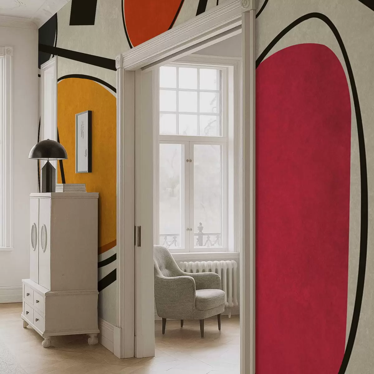 Fototapeten Abstrakte Formen und Linien mit kräftigen Farbfeldern N° w05017