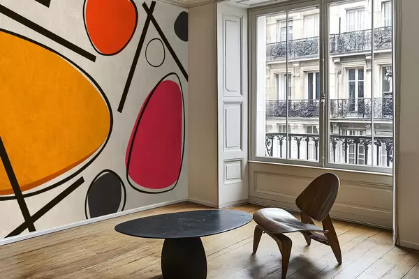 Fototapeten Abstrakte Formen und Linien mit kräftigen Farbfeldern N° w05017