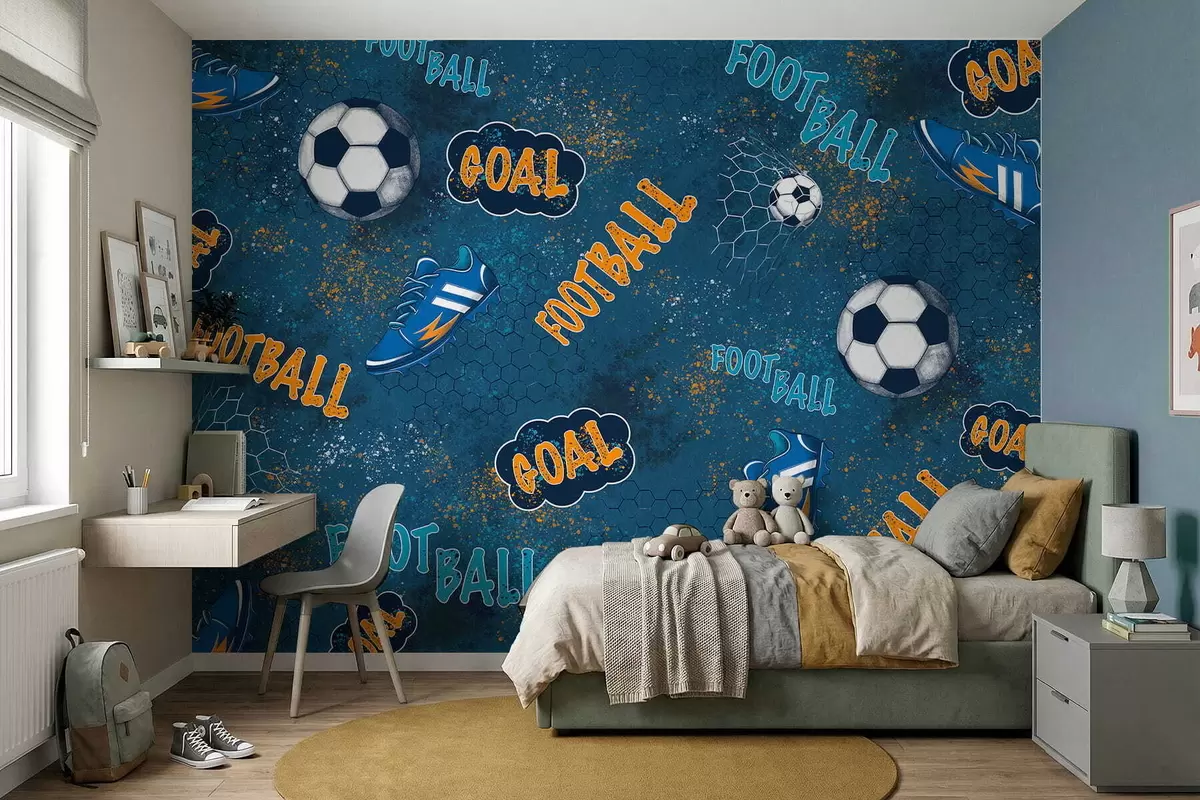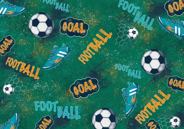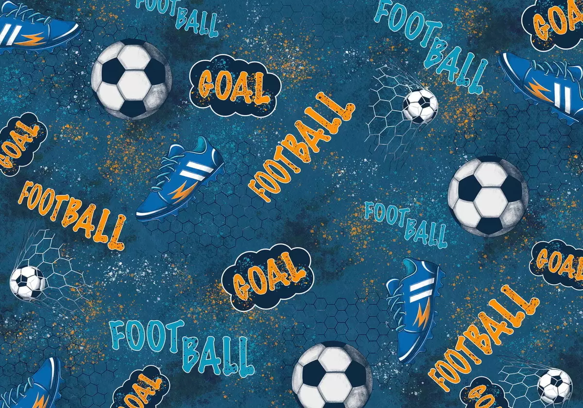 Fototapeten Kindermuster mit Bällen, Schuhen und sportlichen Begriffen N° w05037