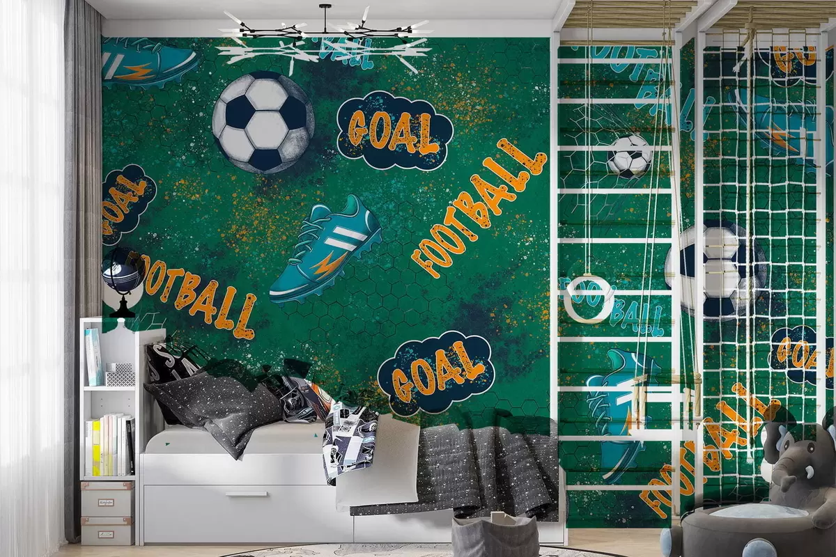 Fototapeten Kinderfußballmuster in Grüntönen N° w05037v1