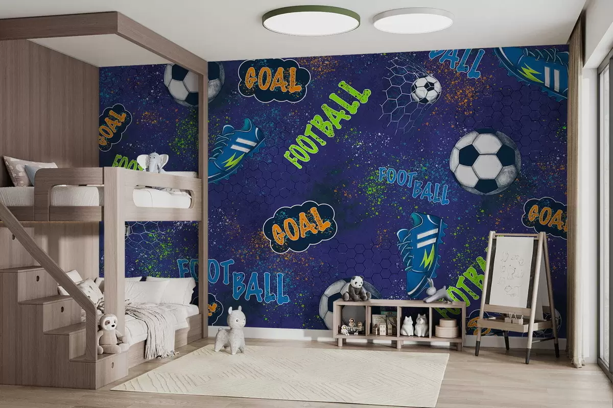 Fototapeten Kinderfußballmuster in dunklen Blautönen N° w05037v3