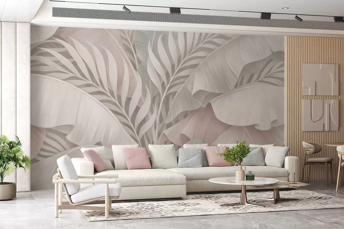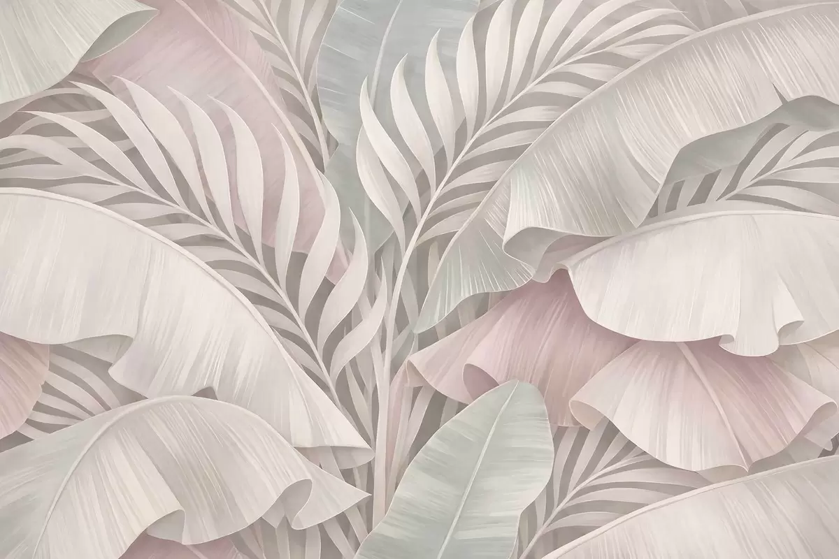 Fototapeten große tropische Blätter in kühlen Rosa- und Grautönen N° w05062v1