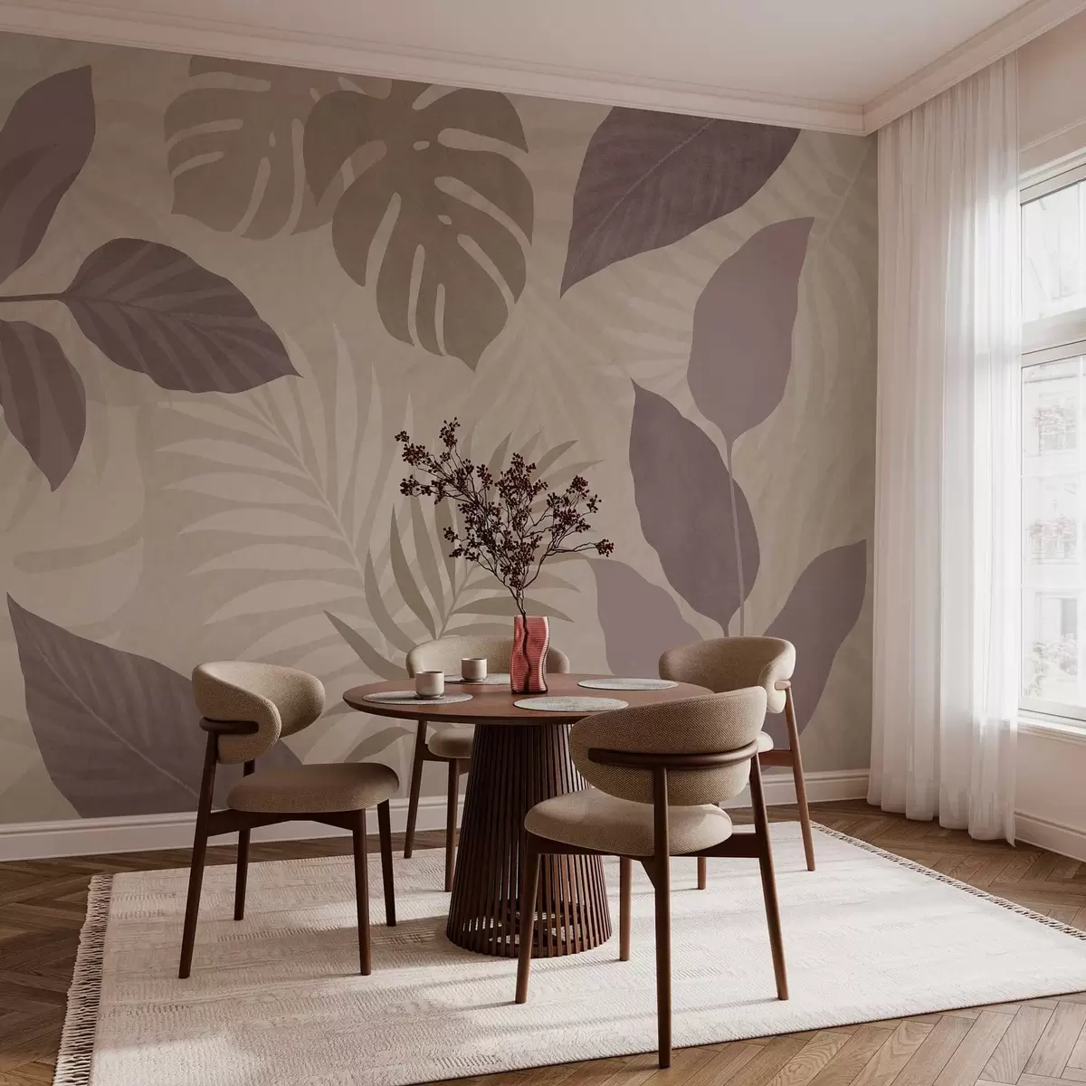 Fototapeten strukturierte tropische Blätter auf sandigem Hintergrund N° w05063