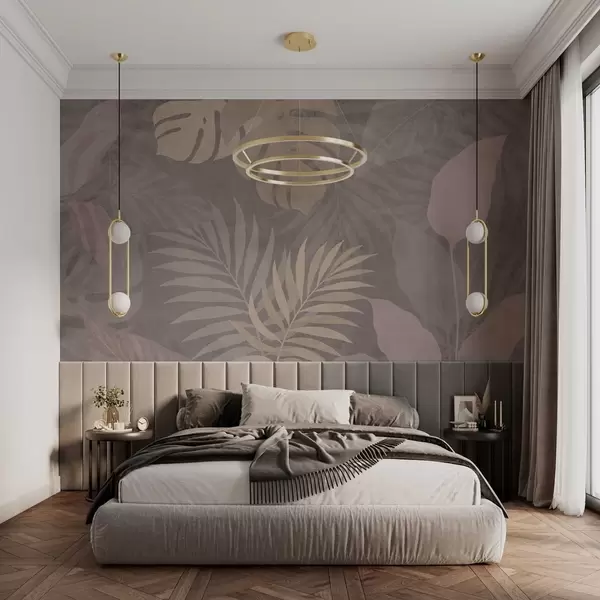 Fototapeten strukturierte tropische Blätter auf grauem Hintergrund N° w05063v1