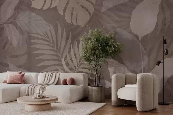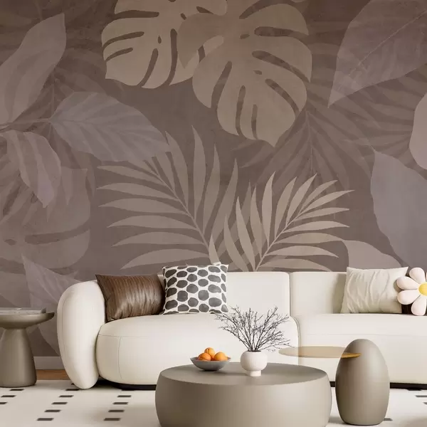 Fototapeten strukturierte tropische Blätter auf schokoladenbraunem Hintergrund N° w05063v2