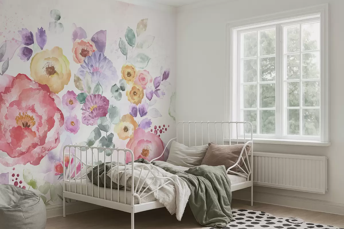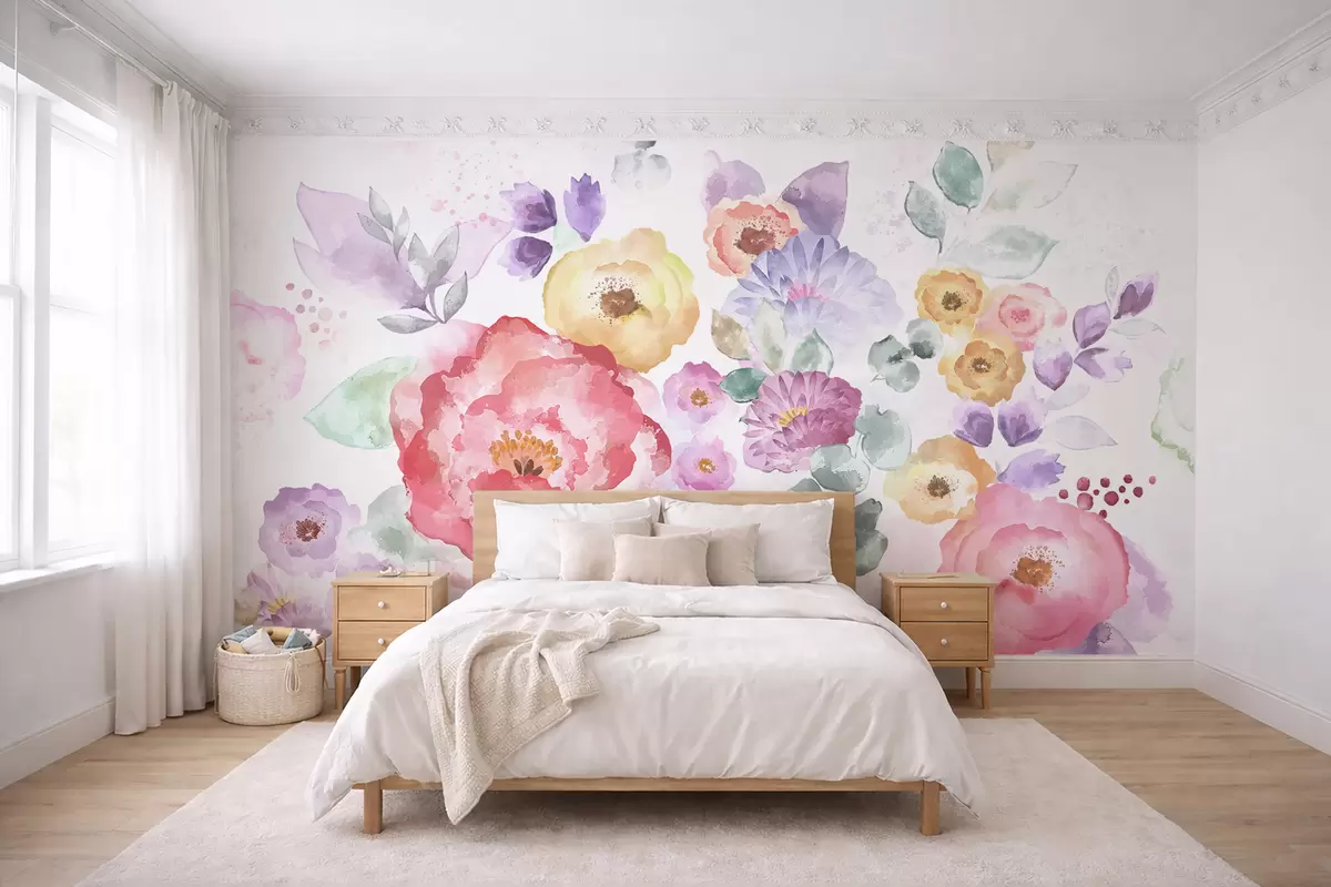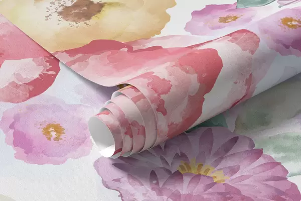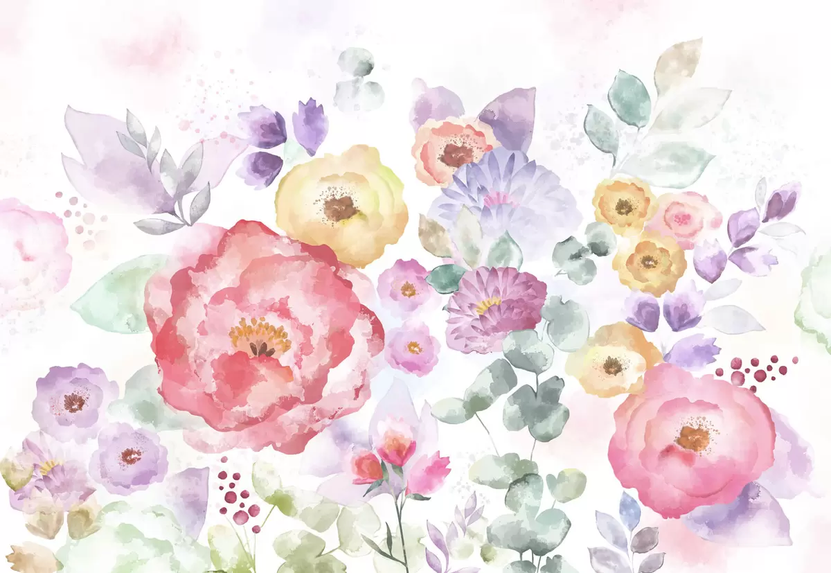 Fototapeten Pastellfarbene Aquarellblumen auf hellem Hintergrund N° w05093v1