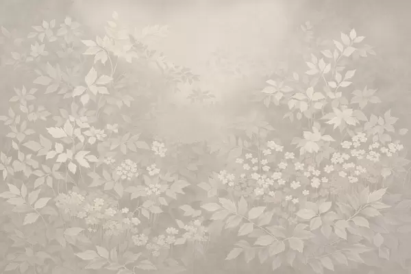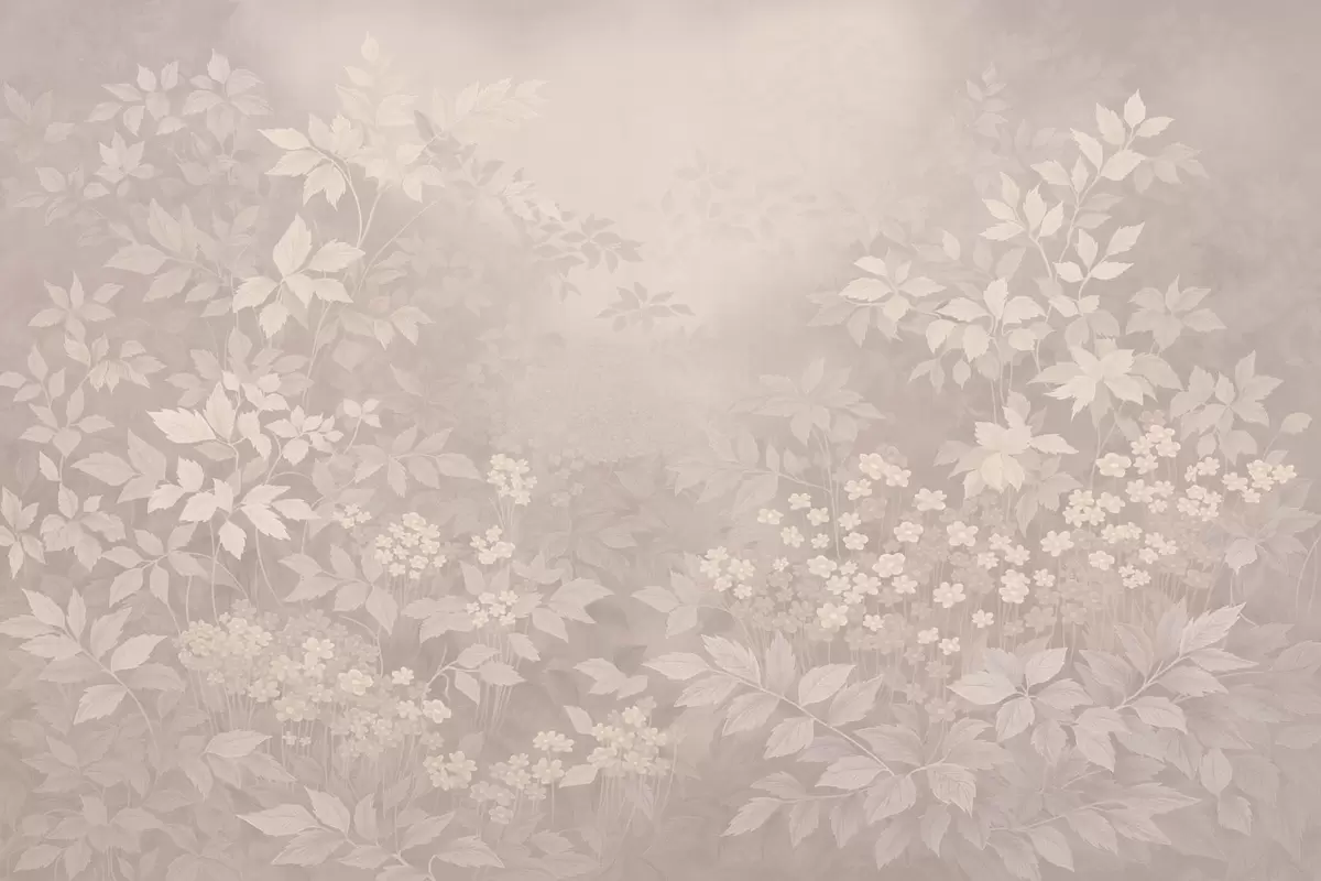 Fototapeten Leichtes botanisches Ornament mit Blättern und kleinen Blüten N° w05115