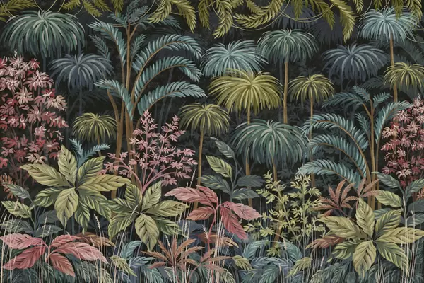 Fototapeten Dichtes tropisches Laubwerk mit großen Blättern N° w05116
