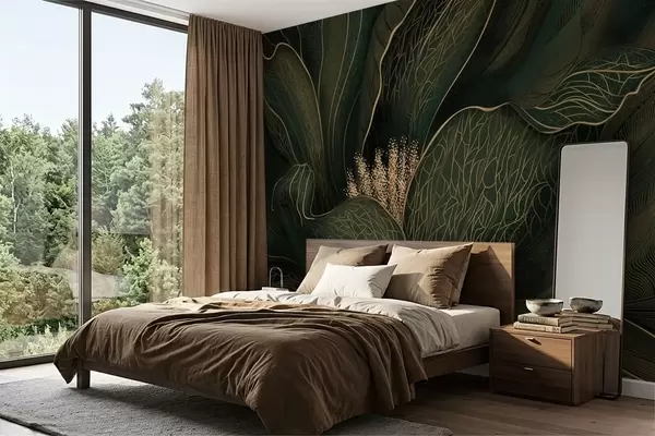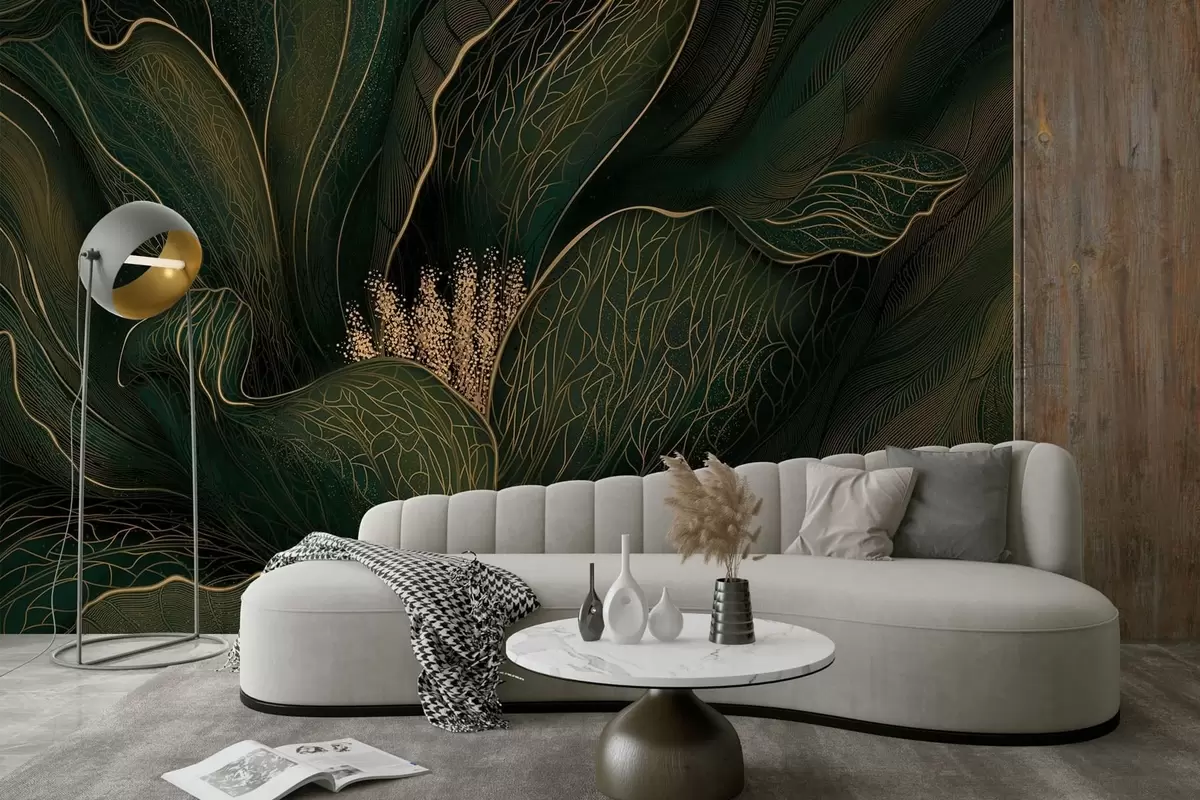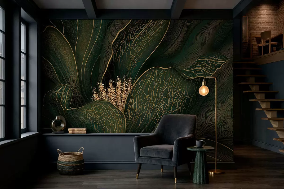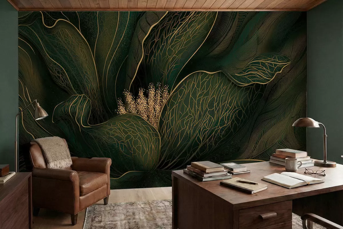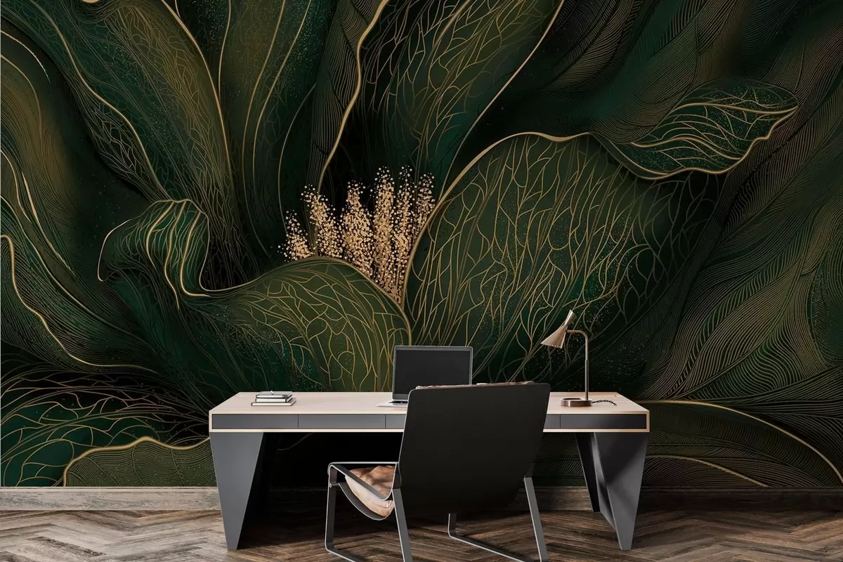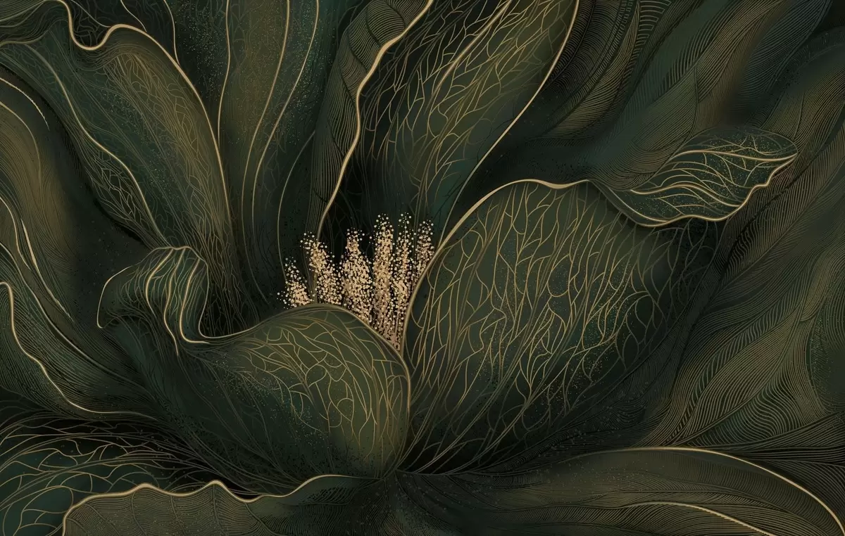 Fototapeten Dunkelgrüne abstrakte Blume mit feinen Linien N° w05119v1