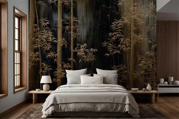 Fototapeten Dunkler Bambus auf schwarzem Hintergrund N° w05120