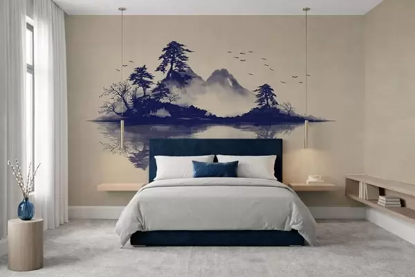 Fototapeten Sumi-e-Berglandschaft in Blautönen N° w05124v2