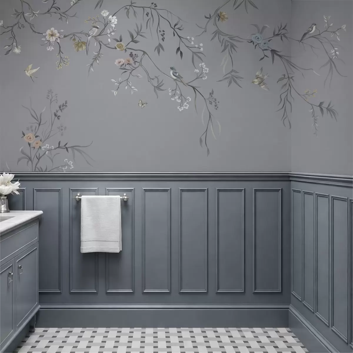 Sie können die Tapete sehr vorsichtig mit einem leicht feuchten Schwamm reinigen. Wir raten jedoch davon ab, die Tapete zu schrubben oder Reinigungsmittel zu verwenden, da dies die Oberfläche und die Farben der Tapete beschädigen kann.